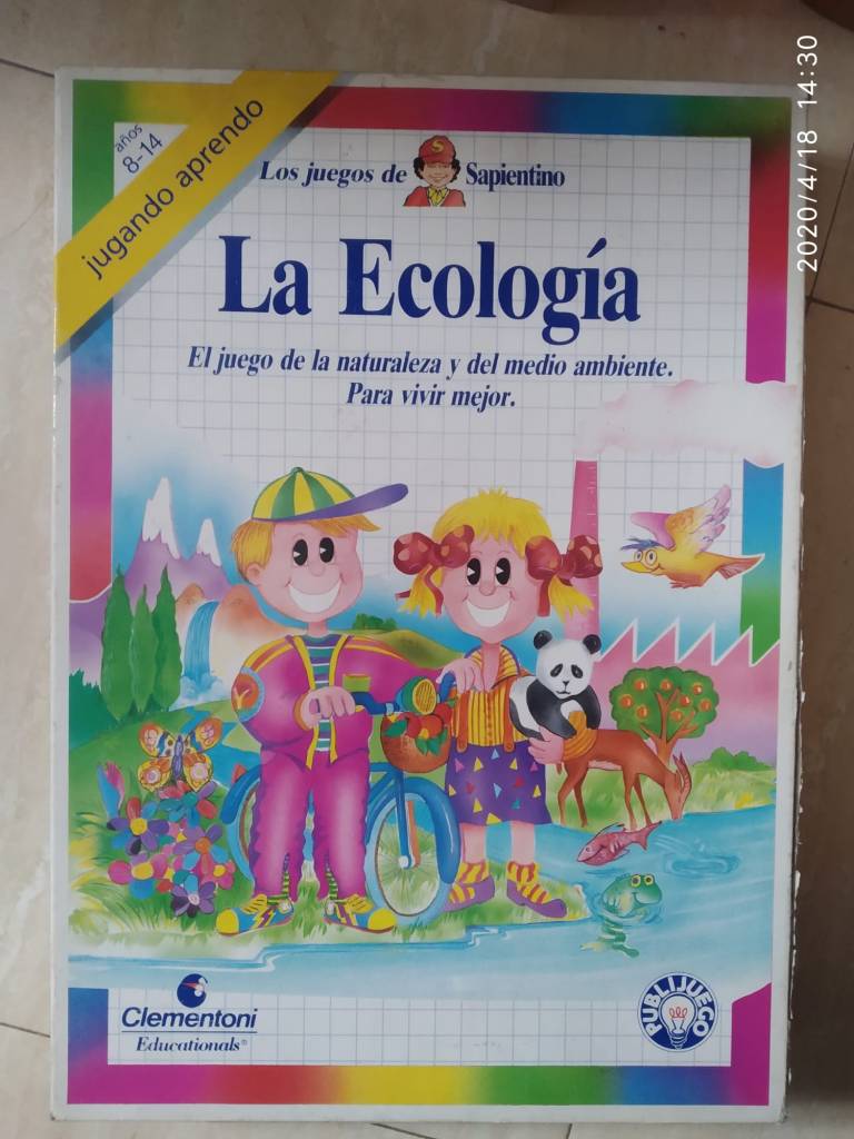 Lo cogí y miré la caja de aspecto ochentero. El título era: “La ecología. El juego de la naturaleza y del medio ambiente para vivir mejor”. Recomendado para niños entre 8 y 14 años.