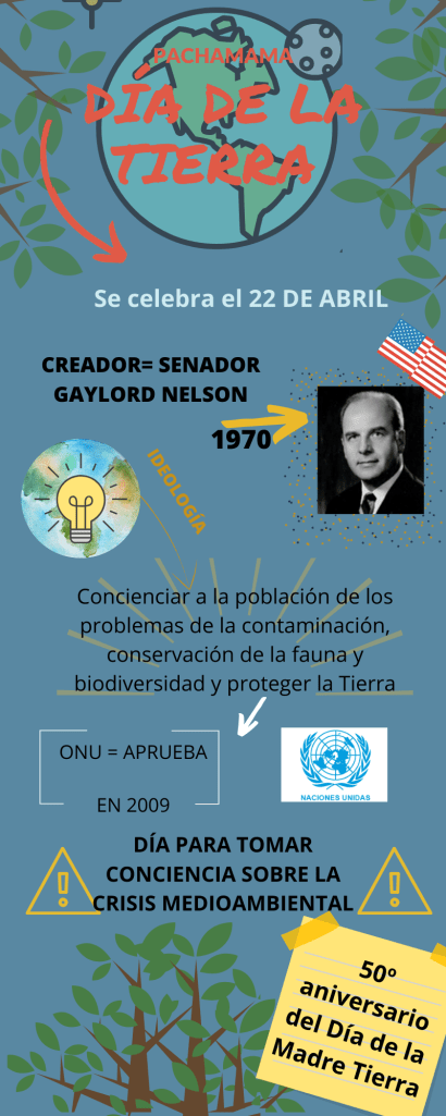 Hoy es el 50º Aniversario del Día de la Tierra pero, ¿conoces algo sobre este día? en la siguiente infografía te presentamos algunos de los datos más interesantes de este maravilloso día. La Tierra es nuestro hogar y hoy más que nunca, debemos pensar en ella y en su cuidado.